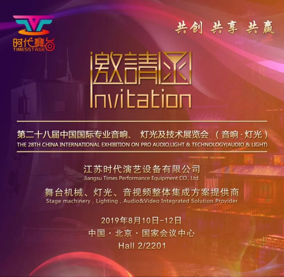 展會期間,舞臺機械高峰論壇將于第一天8月10日上午9:30在國家會議中心4號館內(nèi)會議區(qū)同期舉行。9:30時,江蘇時代舞臺總經(jīng)理于鋒,將作為第一位演講嘉賓,就《德國意大利劇場舞臺技術(shù)考察與思考》、《劇院建設(shè)中舞臺工藝的實際應(yīng)用》兩個主題作專題演講和分享,邀請您屆時蒞臨論壇現(xiàn)場,共同參與溝通討論。 2019 PALM 江蘇時代舞臺展位效果圖本次展會江蘇時代舞臺將攜新型卷揚機、新型舞臺機械控制臺等展品亮相展示。江蘇時代演藝設(shè)備有限公司(以下簡稱“江蘇時代”)總部基地位于梅蘭芳故鄉(xiāng)——江蘇泰州,擁有30多年舞臺設(shè)備設(shè)計和制造歷史,配置有4萬...