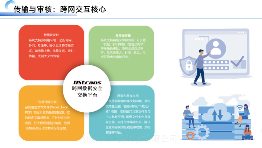 企業(yè)跨網(wǎng)數(shù)據(jù)**交換系統(tǒng)通常采用模塊化架構(gòu),涵蓋傳輸、**、審核和存儲(chǔ)多個(gè)環(huán)節(jié)。系統(tǒng)支持多網(wǎng)絡(luò)環(huán)境,能夠適配內(nèi)網(wǎng)、外網(wǎng)及專(zhuān)線等多種連接方式,滿足不同網(wǎng)絡(luò)拓?fù)湫枨?。傳輸模塊采用專(zhuān)有技術(shù),確保大文件穩(wěn)定傳輸,避免數(shù)據(jù)丟失和傳輸中斷。**模塊包含敏感詞檢測(cè)功能,覆蓋文件內(nèi)容及文件名,支持自定義敏感詞庫(kù),針對(duì)企業(yè)涉密信息和行業(yè)合規(guī)要求進(jìn)行實(shí)時(shí)監(jiān)控,發(fā)現(xiàn)異常自動(dòng)攔截或提醒。審核模塊支持多層級(jí)審批流程,靈活配置多角色參與審批,所有操作均有記錄,支持導(dǎo)出日志,滿足合規(guī)審計(jì)需求。存儲(chǔ)模塊提供網(wǎng)盤(pán)和共享文檔功能,支持按角色設(shè)置查看、編輯、下載和分享權(quán)限,實(shí)現(xiàn)**的文件共享與協(xié)作。系統(tǒng)界面設(shè)計(jì)注重用戶體驗(yàn),簡(jiǎn)潔明了,降低業(yè)務(wù)部門(mén)使用門(mén)檻,減少對(duì)IT支持的依賴。江蘇恒正鑫科技有限公司基于DStrans跨網(wǎng)數(shù)據(jù)**交換系統(tǒng),結(jié)合本地市場(chǎng)特點(diǎn),提供本地化部署和定制化服務(wù),滿足各類(lèi)機(jī)構(gòu)及企業(yè)客戶在跨網(wǎng)數(shù)據(jù)交換中的多樣化需求,推動(dòng)數(shù)字化轉(zhuǎn)型進(jìn)程。符合行業(yè)規(guī)范的跨網(wǎng)數(shù)據(jù)**交換研發(fā),聚焦于數(shù)據(jù)傳輸全過(guò)程的**管控,推動(dòng)企業(yè)實(shí)現(xiàn)信息資產(chǎn)的有效保護(hù)。安徽一對(duì)多跨網(wǎng)數(shù)據(jù)**交換咨詢