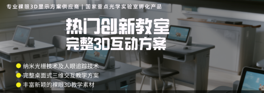 跨學(xué)科創(chuàng)新教室教學(xué)強(qiáng)調(diào)多學(xué)科知識(shí)的融合與協(xié)同,促進(jìn)學(xué)生綜合能力的培養(yǎng)。該教室通過(guò)集成裸眼3D顯示系統(tǒng)、全息投影及觸控交互屏幕,提供沉浸式的學(xué)習(xí)體驗(yàn),使不同學(xué)科的內(nèi)容得以直觀展示和交互操作。系統(tǒng)支持虛擬實(shí)驗(yàn)和情境化教學(xué),幫助學(xué)生在實(shí)踐中理解復(fù)雜概念,增強(qiáng)跨領(lǐng)域知識(shí)的聯(lián)系。教學(xué)資源庫(kù)豐富,教師管理后臺(tái)方便內(nèi)容更新與課堂數(shù)據(jù)管理,提升教學(xué)的靈活性和針對(duì)性。設(shè)備兼容STEAM課程體系,適用于中小學(xué)及職業(yè)培訓(xùn),滿足多樣化的教學(xué)需求。納米光柵技術(shù)與人眼追蹤技術(shù)確保視覺效果自然真實(shí),提升學(xué)習(xí)舒適度和專注力??鐚W(xué)科創(chuàng)新教室教學(xué)注重教學(xué)實(shí)用性與技術(shù)創(chuàng)新,促進(jìn)學(xué)生創(chuàng)造力和問(wèn)題解決能力的發(fā)展。整體環(huán)境支持多元化教學(xué)模式,推動(dòng)教育機(jī)構(gòu)實(shí)現(xiàn)數(shù)字化轉(zhuǎn)型。愛曲亞智能科技(上海)有限公司提供先進(jìn)的裸眼3D顯示解決方案,賦能教育創(chuàng)新。購(gòu)買創(chuàng)新教室教學(xué)設(shè)備可通過(guò)正規(guī)廠家官網(wǎng)、授權(quán)經(jīng)銷商或行業(yè)展會(huì),保障產(chǎn)品質(zhì)量和售后服務(wù)。北京學(xué)科可視化創(chuàng)新教室教學(xué)資源及服務(wù)體系